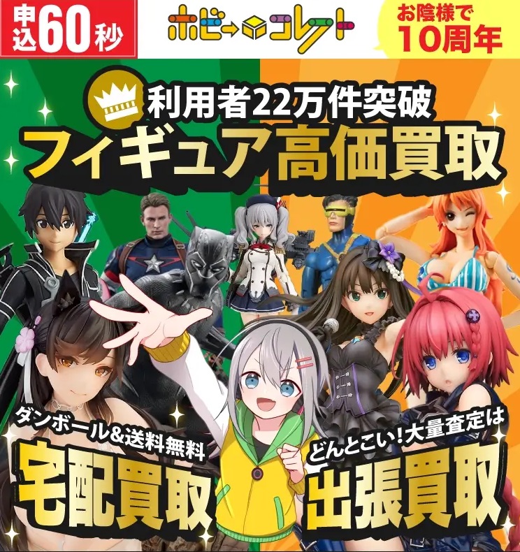 | 5位 | ホビーコレクト | トレカ以外のホビー品も一緒に買取可能。宅配キットあり | 宅配 | 多くの手数料が無料、梱包キットあり | フィギュア・ゲームなどもまとめて売りたい |